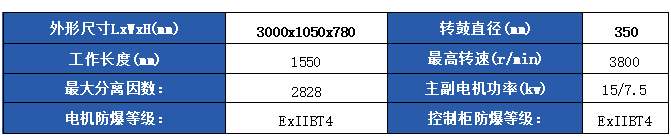 污泥含固(沉降污水的产物,其中固体SS 悬浮物有机、无机各占一半) 进料含固率:1-8wt%, 固体平均直径50μm~0.5μm,进料体积流量:5~12m3/h; 常规型安装位置:室内